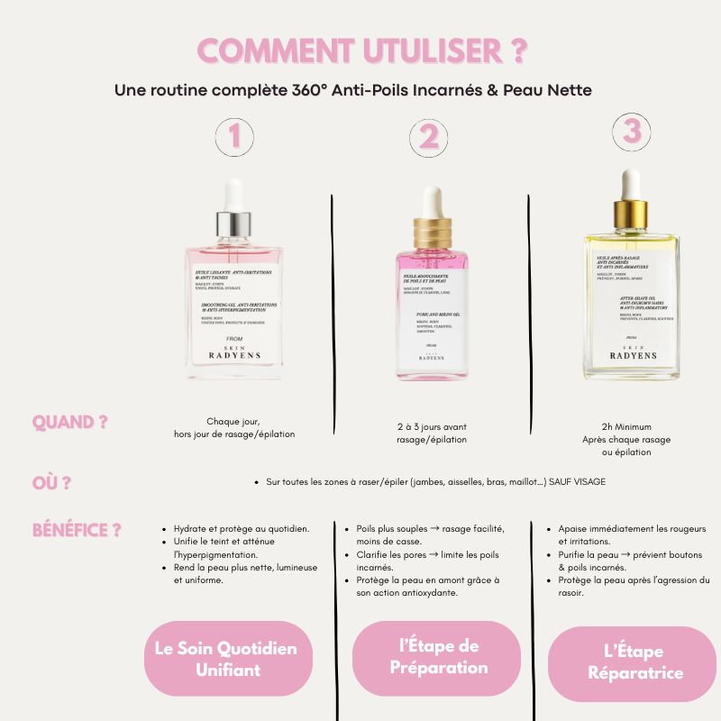 " Avec RADYENS, réduisez poils incarnés et repousse en un geste à la fois "
